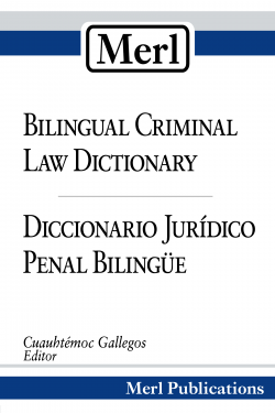 | Following the unprecedented transformation of the criminal systems of Latin America and Spain, Merl Bilingual Criminal Law Dictionary lists the most important terms and expressions related to criminal law and procedure and their equivalents in English and Spanish as they appear in legal sources and are used in the courts today. |
